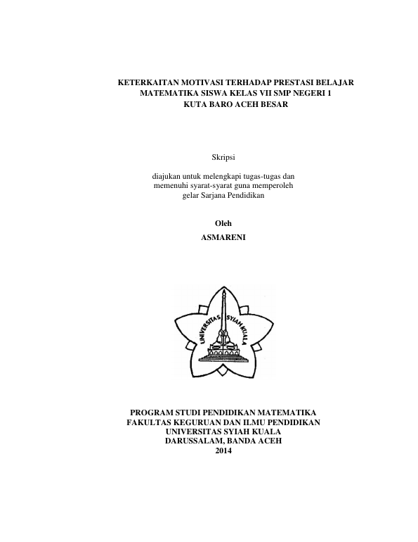 Baca Juga : HUBUNGAN MOTIVASI BELAJAR SISWA TERHADAP PRESTASI BELAJAR MATEMATIKA SISWA KELAS VII DI SMP NEGERI 8 BANDA ACEH TAHUN PELAJARAN 2014/2015 (Kartika Sarah, 2015)