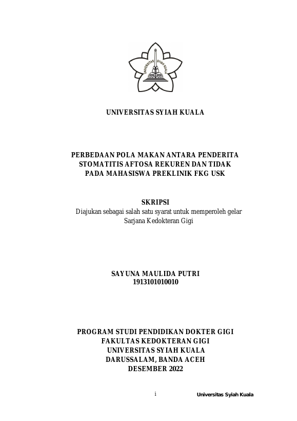Baca Juga : GAMBARAN STRES AKADEMIK PADA RIWAYAT STOMATITIS AFTOSA REKUREN MAHASISWA PREKLINIK FAKULTAS KEDOKTERAN GIGI UNIVERSITAS SYIAH KUALA (Farras Shahira Firmansyah, 2024)