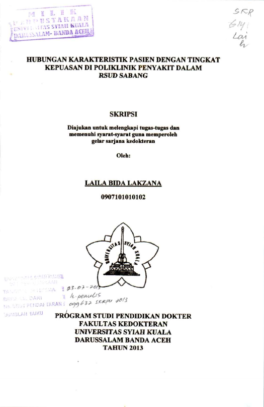 Baca Juga : HUBUNGAN KARAKTERISTIK MAHASISWA DENGAN TINGKAT KEPUASAN PELAYANAN KESEHATAN DI RUMAH SAKIT PRINCE NAYEF BIN ABDUL AZIZ UNIVERSITAS SYIAH KUALA BANDA ACEH (SAKINAH WARDHATUL AINI, 2019)