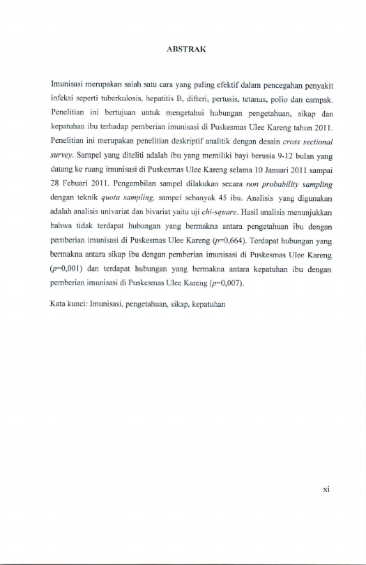 Baca Juga : FAKTOR - FAKTOR YANG BERPERAN TERHADAP PEMBERIAN IMUNISASI DASAR PADA BAYI DI PUSKESMAS ULEE KARENG KECAMATAN ULEE KARENG KOTA BANDA ACEH TAHUN 2012 (Laili Safitri, 2023)