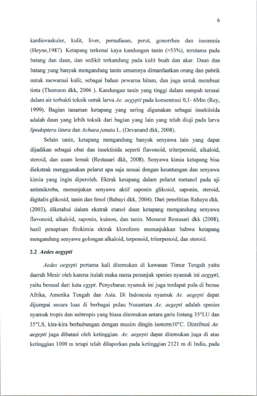 Baca Juga : UJI TOKSISITAS EKSTRAK KECUBUNG (DATURA METEL) TERHADAP MORTALITAS LARVA AEDES AEGYPTI (Syarifah Raihan Mawaddah, 2017)