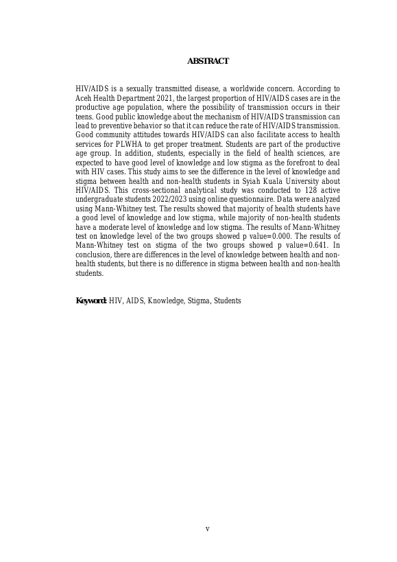 Baca Juga : HUBUNGAN PENGETAHUAN DENGAN SIKAP TENTANG PENYAKIT HIV/AIDS PADA SISWA SMA LAB. SCHOOL UNIVERSITAS SYIAH KUALA (Siska Rahmi, 2018)