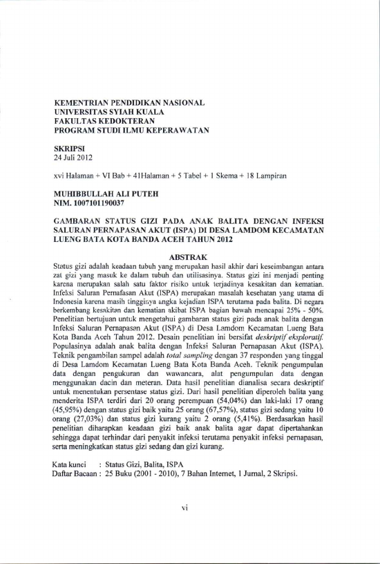 Baca Juga : INFEKSI SALURAN PERNAPASAN ATAS (ISPA) PADA BALITA DI PUSKESMAS KUTA ALAM BANDA ACEH TAHUN 2013 (sry agus mariyati, 2013)