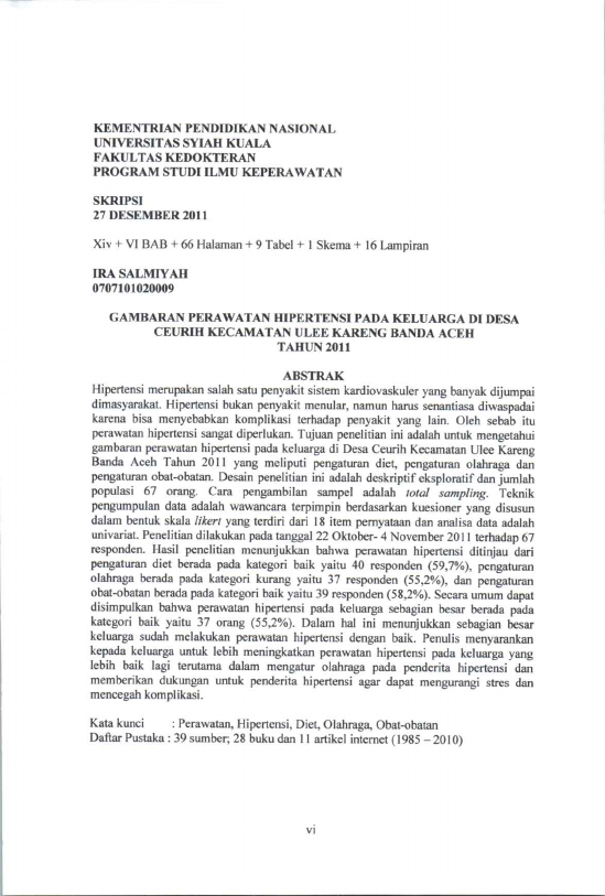 Ira Salmiyah, GAMBARAN PERAWATAN HIPERTENSI PADA KELUARGA DI DESA CEURIH KECAMATAN ULEE KARENG BANDA ACEH TAHUN 2011. Banda Aceh Fakultas Kedokteran,2011