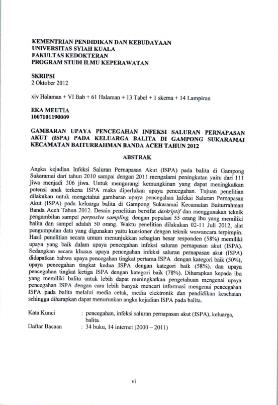 Baca Juga : GAMBARAN UPAYA PENCEGAHAN INFEKSI SALURAN PERNAPASAN AKUT (ISPA) PADA KELUARGA BALITA DL GAMPONG SUKARAMAI KECAMATAN BAITURRAHMAN BANDA ACEH TAHUN 2012 (Eka meutia, 2023)