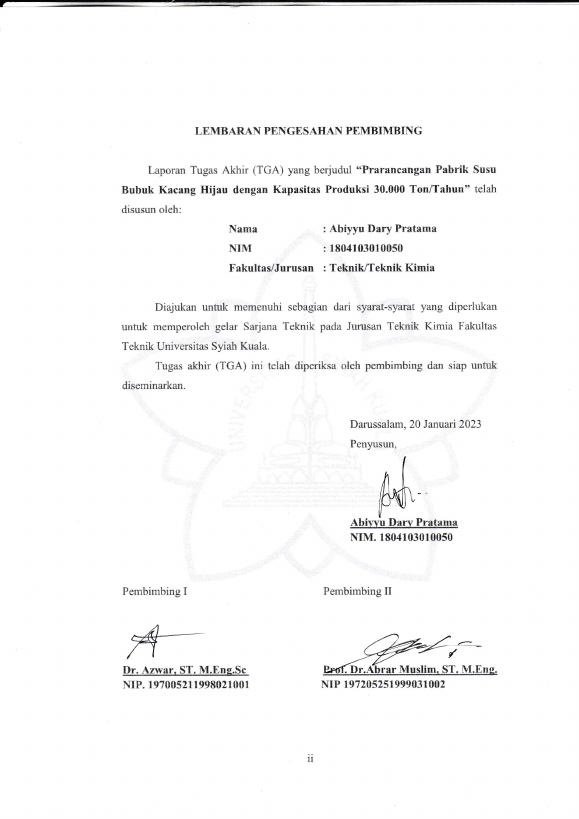 Baca Juga : PRA-RANCANGAN PABRIK SUSU KACANG HIJAU BUBUK MENERAPKAN MODIFIKASI TEKNIK ILLINOIS DENGAN KAPASITAS PRODUKSI 15.000 TON/TAHUN (CUT RAHMI FITRIA, 2025)