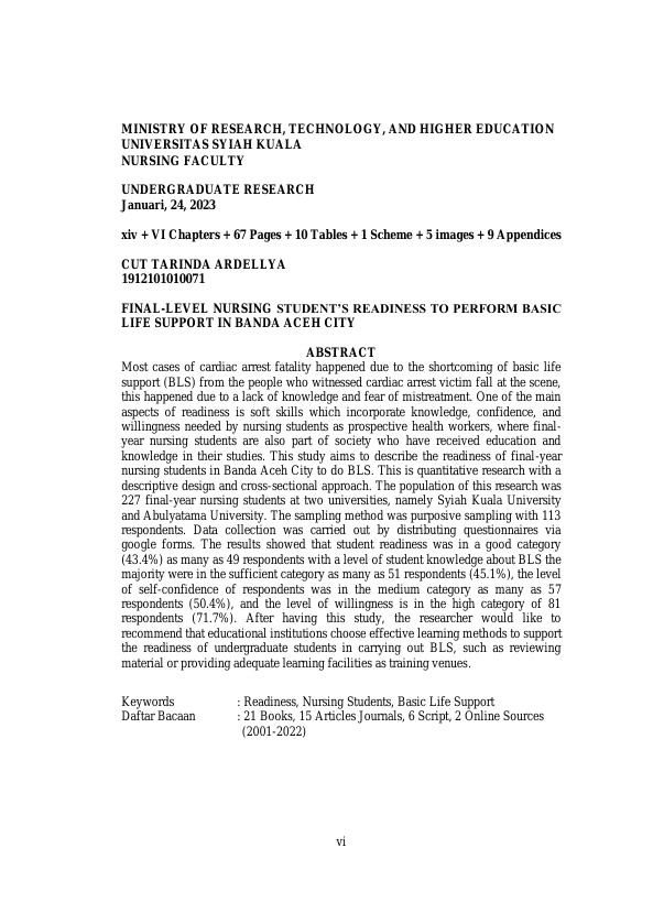 Baca Juga : KESIAPAN MAHASISWA KEPERAWATAN KOTA BANDA ACEH DALAM MELAKUKAN PERTOLONGAN PERTAMA PADA FRAKTUR (Safina Salsabila, 2024)
