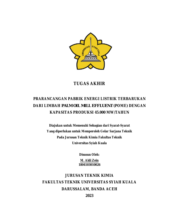 Baca Juga : PRARANCANGAN PABRIK ENERGI LISTRIK TERBARUKAN DARI LIMBAH PALM OIL MILL EFFLUENT (POME) DENGAN KAPASITAS PRODUKSI 45.000 MW/TAHUN (M. ALDI ZEIN, 2023)