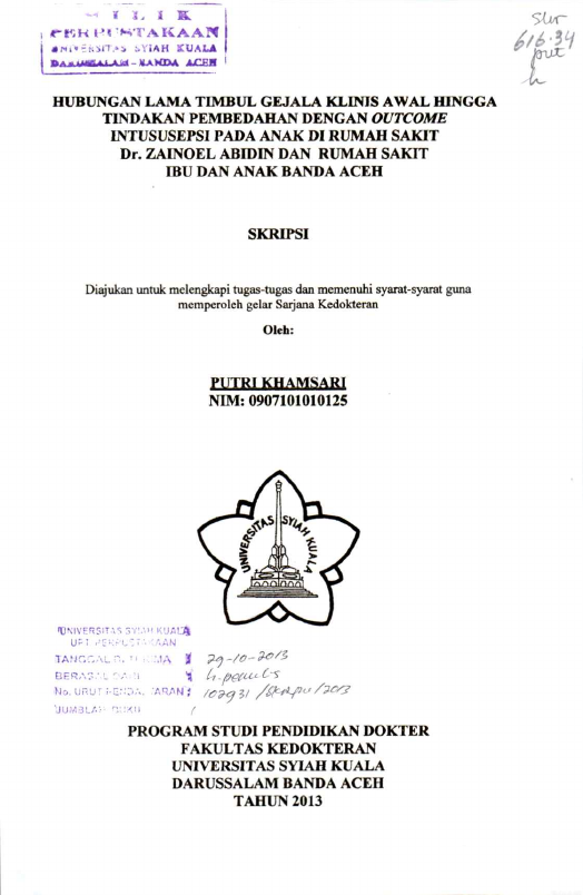 Baca Juga : HUBUNGAN LAMA TIMBUL GEJALA KLINIS AWAL HINGGA TINDAKAN PEMBEDAHAN DENGAN OUTCOME INTUSUSEPSI PADA ANAK DI RUMAH SAKIT DR. ZAINOEL ABIDIN DAN RUMAH SAKIT IBU DAN ANAK BANDA ACEH (Putri Khamsari, 2016)