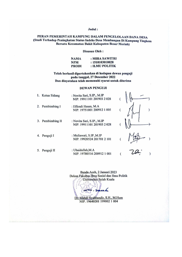 Baca Juga : IMPLEMENTASI PENGELOLAAN DANA KAMPUNG OLEH PEMERINTAH KAMPUNG DI KAMPUNG GUMPANG LEMPUH KECAMATAN PUTERI BETUNG KABUPATEN GAYO LUES (Laela Fitriani, 2020)
