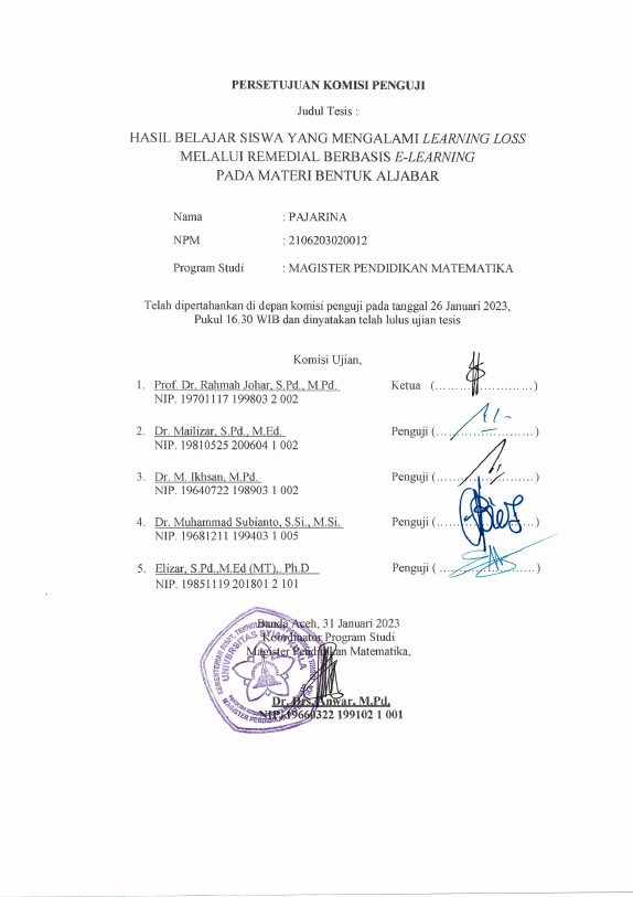 Baca Juga : LEARNING LOSS SISWA PADA MATERI ALJABAR PASCA COVID-19 DI SMP NEGERI 1 PEUREULAK (, 2024)