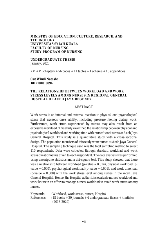 Baca Juga : HUBUNGAN BEBAN KERJA PERAWAT PELAKSANA PER SHIFT RNJAGA DENGAN STRES KERJA DI RUANG RAWAT INAP RNRUMAH SAKIT UMUM DAERAH DR. ZAINOELRNABIDIN BANDA ACEH RNTAHUN 2012 (Zuni syafa Rida, 2022)