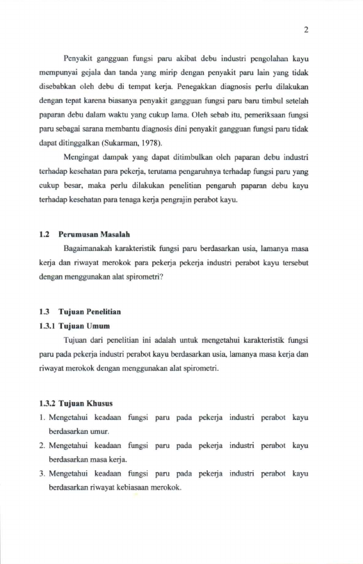 Andi karisma, KARAKTERISTIK FUNGSI PARU PEKERJA INDUSTRI PERABOT KAYU DI DESA TUNGKOB, KECAMATAN DARUSSALAM, ACEH BESAR. Banda Aceh Fakultas Kedokteran,2012