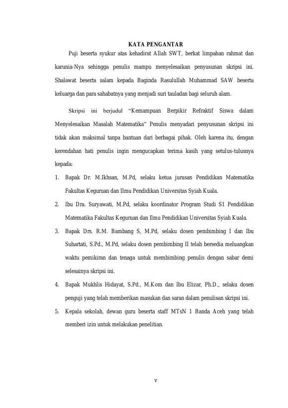NINDIAH ANDARAKA, KEMAMPUAN BERPIKIR REFRAKTIF SISWA DALAM MENYELESAIKAN MASALAH MATEMATIKA. Banda Aceh Fakultas KIP Matematika,2023