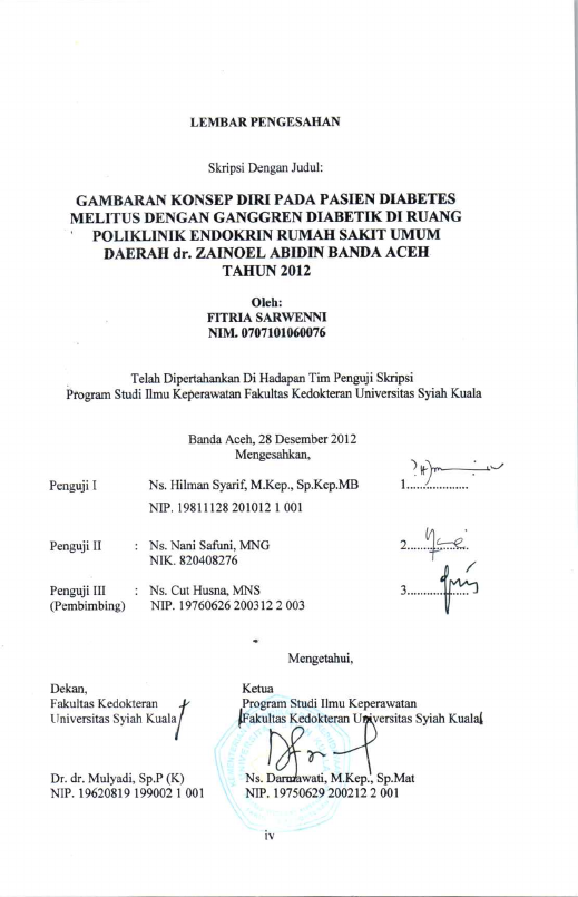 Baca Juga : HUBUNGAN SPIRITUALITAS DENGAN HARGA DIRI PASIEN ULKUS DIABETIK DI POLIKLINIK ENDOKRIN RUMAH SAKIT UMUM DAERAH DR. ZAINOEL ABIDIN BANDA ACEH TAHUN 2014 (cut nurul linda, 2014)