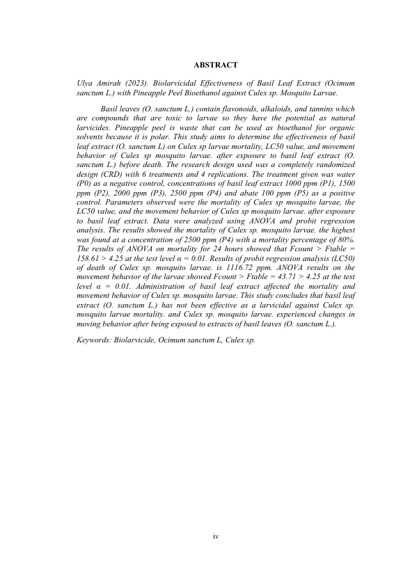 Baca Juga : MORTALITAS BIOLARVASIDA EKSTRAK DAUN TAGETES ERECTA LINNAEUSRNTERHADAP LARVA AEDES AEGYPTI LINNAEUS INSTAR III DENGANRNPELARUT ETANOL 70% DAN PELARUT AIR (Umratul Mondricha, 2022)