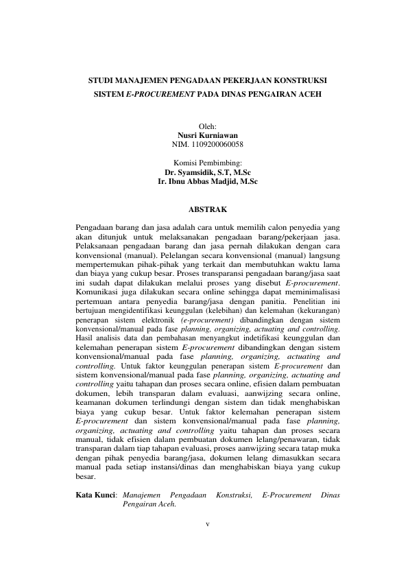 Baca Juga : STUDI MANAJEMEN PENGADAAN PEKERJAAN RNKONSTRUKSI SISTEM E-PROCUREMENT PADARNDINAS PENGAIRAN ACEH (nusri kurniawan, 2014)