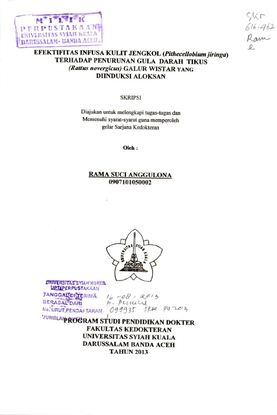 Baca Juga : EFEKTIFITAS INFUSA KULIT JENGKOL (PITHECELOBIUM JIRINGA) TERHADAP PENURUNAN GULA DARAH TIKUS (RATUS NOVERGICUS ) GALUR WISTAR YANG DIINDUKSI ALOKSAN (Rama Suci Anggulona , 2016)