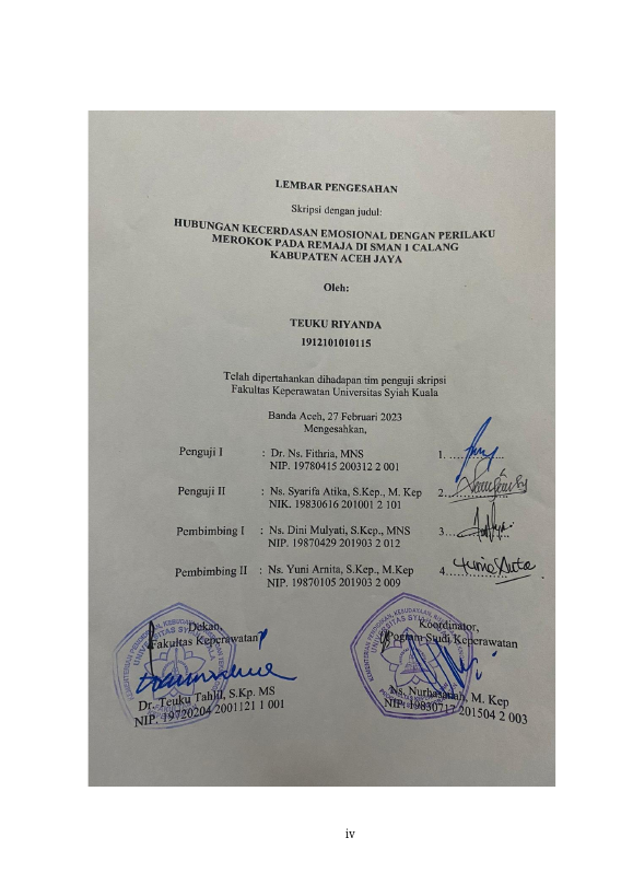Baca Juga : HUBUNGAN PERILAKU MEROKOK DENGAN KECERDASANN EMOSIONAL PADA REMAJA DI SMA NEGERI 15 ADIDARMA BANDA ACEH (ADE ARRAYYAN IBRAHIM, 2018)