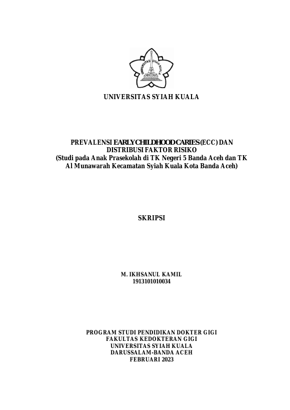 Baca Juga : PREVALENSI EARLY CHILDHOOD CARIES (ECC) DAN DISTRIBUSI FAKTOR RISIKO (STUDI PADA ANAK PRASEKOLAH DI TK NEGERI 5 BANDA ACEH DAN TK AL MUNAWARAH KECAMATAN SYIAH KUALA KOTA BANDA ACEH) (M. Ikhsanul Kamil, 2023)