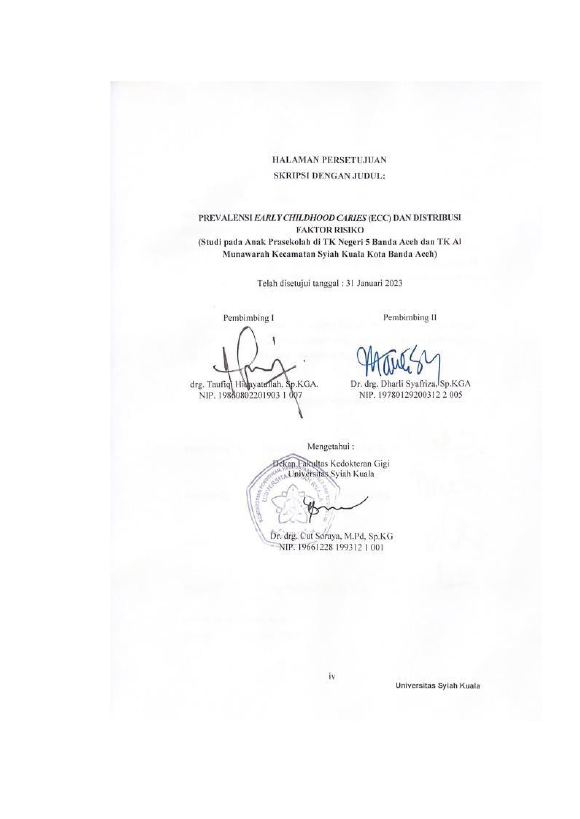 Baca Juga : PREVALENSI EARLY CHILDHOOD CARIES (ECC) DAN DISTRIBUSI FAKTOR RISIKO (STUDI PADA ANAK PRASEKOLAH DI TK NEGERI 5 BANDA ACEH DAN TK AL MUNAWARAH KECAMATAN SYIAH KUALA KOTA BANDA ACEH) (M. Ikhsanul Kamil, 2023)