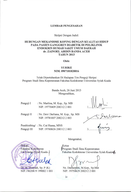Yurike, HUBUNGAN MEKANISME KOPING DENGAN KUALITAS HIDUP PADA PASIEN GANGGREN DIABETIK DI POLIKLINIK ENDOKRIN RUMAH SAKIT UMUM DAERAH DR. ZAINOEL ABIDIN BANDA ACEH TAHUN 2013. Banda Aceh Fakultas Kedokteran,2013