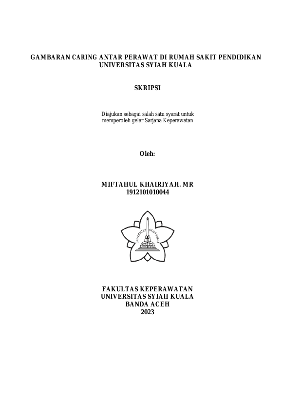 Miftahul Khairiyah.MR, GAMBARAN CARING ANTAR PERAWAT DI RUMAH SAKIT PENDIDIKAN UNIVERSITAS SYIAH KUALA. Banda Aceh Fakultas Keperawatan,2023