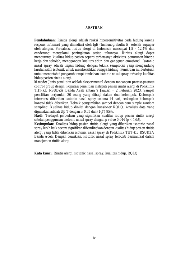 Baca Juga : PERBEDAAN KUALITAS HIDUP PENDERITA RINITIS ALERGI DAN NON-RINITIS ALERGI PADA SANTRI DAYAH INSHAFUDDIN DI BANDA ACEH (PUTRI NABILLAH MULYA, 2019)