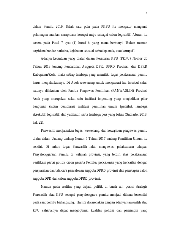 Muhd. Arbiansyah Farthuby, INTEGRITAS PANWASLIH PROVINSI ACEH DALAM PENYELESAIAN SENGKETA PENCALONAN MANTAN NARAPIDANA KORUPSI PADA PEMILU TAHUN 2019 DI ACEH. Banda Aceh Fakultas Ilmu Sosial dan Ilmu Politik,2023