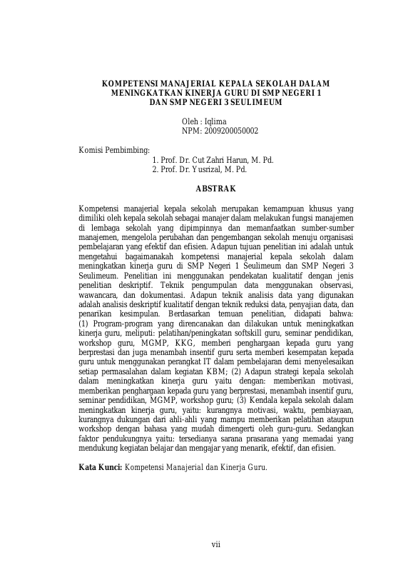 Baca Juga : KOMPETENSI MANAJERIAL KEPALA SEKOLAH DALAM PEMBERDAYAAN KINERJA GURU PADA SMA NEGERI UNGGUL DI KABUPATEN ACEH BESAR (SYARIFAH NURMASYITHAH, 2019)
