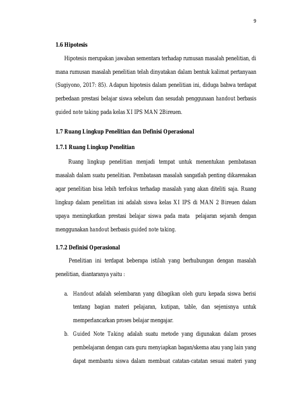 Hisyi Harifa, PENGGUNAAN HANDOUT BERBASIS GUIDED NOTE TAKING PADA PEMBELAJARAN SEJARAH UNTUK MENINGKATKAN PRESTASI BELAJAR SISWA KELAS XI IPS MAN 2 BIREUEN. Banda Aceh Fakultas KIP Pendidikan Sejarah,2023
