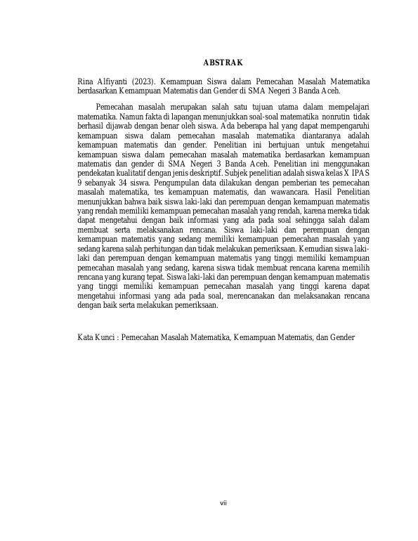 Baca Juga : KEMAMPUAN PEMECAHAN MASALAH MATEMATIS SISWA PADA MATERI ALJABAR DI KELAS VIII SMP NEGERI 6 BANDA ACEH (Auliani Fadillah, 2023)