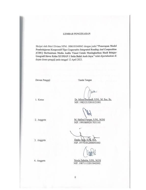 Baca Juga : PENERAPAN MODEL PEMBELAJARAN KOOPERATIF TIPE COOPERATIVEINTEGRATED READING AND COMPOSITION (CIRC) BERBANTUAN MEDIA AUDIO VISUAL UNTUK MENINGKATKAN HASIL BELAJAR GEOGRAFI SISWA KELAS XI SMA NEGERI 1 SETIA BAKTI ACEH JAYA. (MERI ELVIANA, 2023)