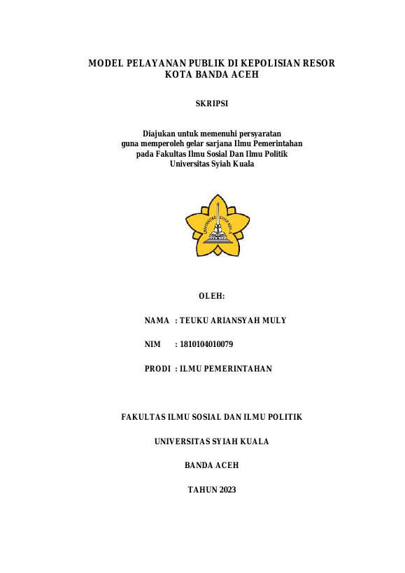 Baca Juga : MODEL PELAYANAN PUBLIK DI KEPOLISIAN RESOR KOTA BANDA ACEH (TEUKU ARIANSYAH MULY, 2023)