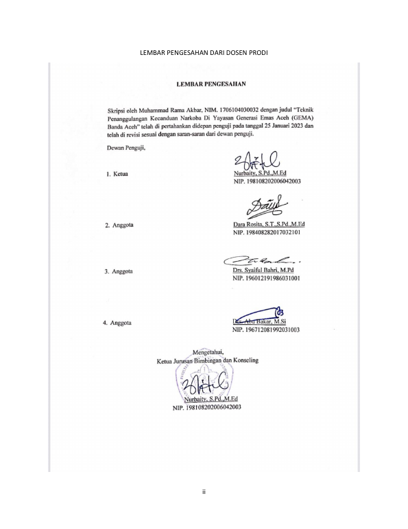 MUHAMMAD RAMA AKBAR, TEKNIK PENANGGULANGAN KECANDUAN NARKOBA DI YAYASAN GENERASI EMAS ACEH (GEMA) BANDA ACEH. Banda Aceh Fakultas KIP Pendidikan Bimbingan dan Konseling,2023