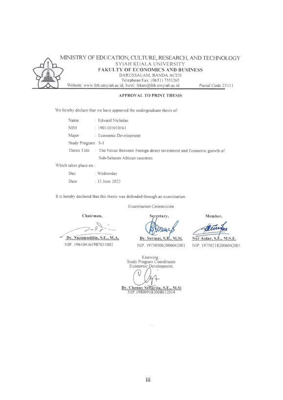 Edward Nicholas, THE NEXUS BETWEEN FOREIGN DIRECT INVESTMENT AND ECONOMIC GROWTH OF SUB-SAHARAN AFRICAN COUNTRIES. Banda Aceh Fakultas Ekonomi dan Bisnis (S1),2023