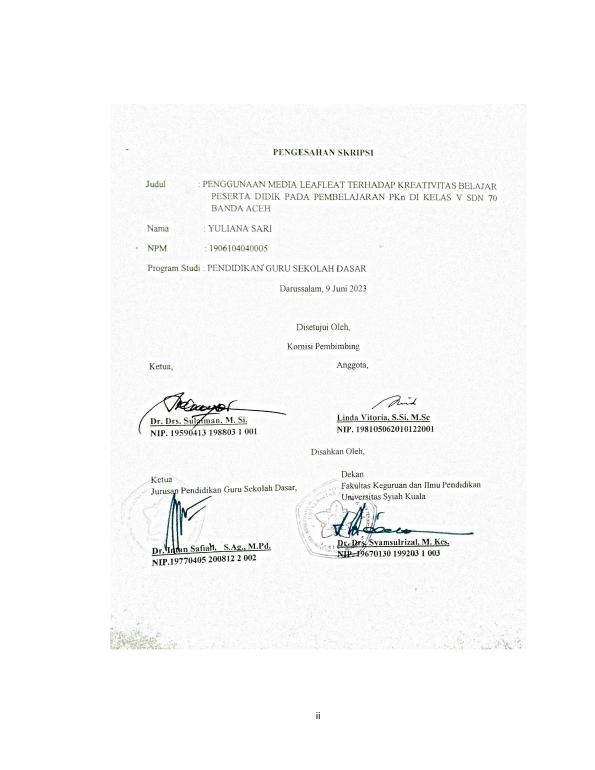 Baca Juga : PENGGUNAAN MEDIA LEAFLEAT TERHADAP KREATIVITAS BELAJAR PESERTA DIDIK PADA PEMBELAJARAN PKN DI KELAS V SDN 70 BANDA ACEH (Yuliana Sari, 2023)