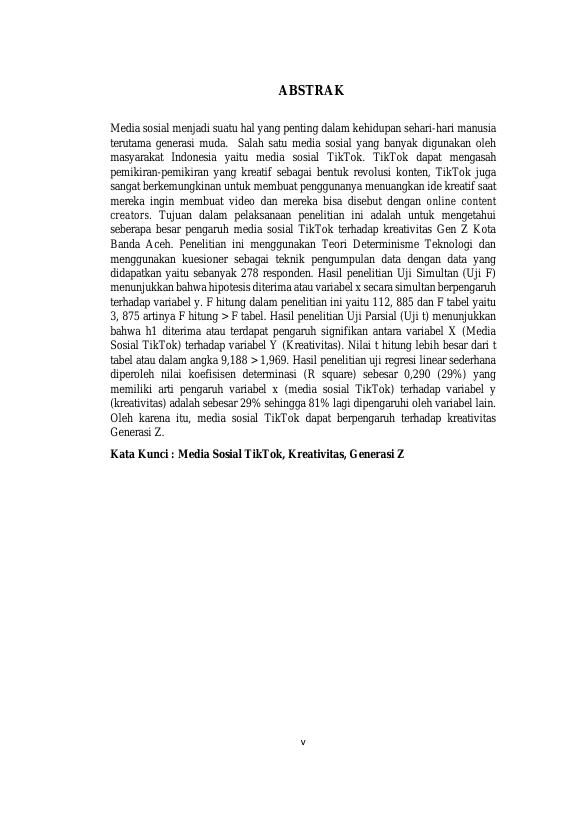 Winona Dwi Azzahra, PENGARUH MEDIA SOSIAL TIKTOK TERHADAP KREATIVITAS GENERASI Z (GEN Z) KOTA BANDA ACEH. Banda Aceh Fakultas Ilmu Sosial dan Politik,2023