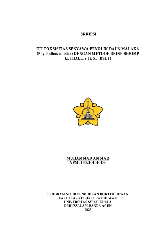 Baca Juga : UJI TOKSISITAS SENYAWA METABOLIT SEKUNDER EKSTRAK N-HEKSAN DAUN SIRSAK ANNONA MURICATA (HAZRINA NOVANI, 2023)