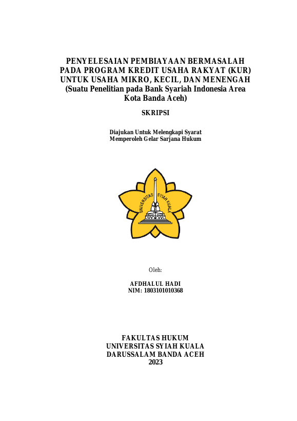 Baca Juga : PENYELESAIAN KREDIT MACET PROGRAM KREDIT USAHA RAKYAT (KUR) MIKRO DIKAITKAN DENGAN USAHA MIKRO, KECIL, DAN MENENGAH (STUDI PADA BANK BRI UNIT KOTA BINJAI) (NEZA DWI ANDIKA, 2016)
