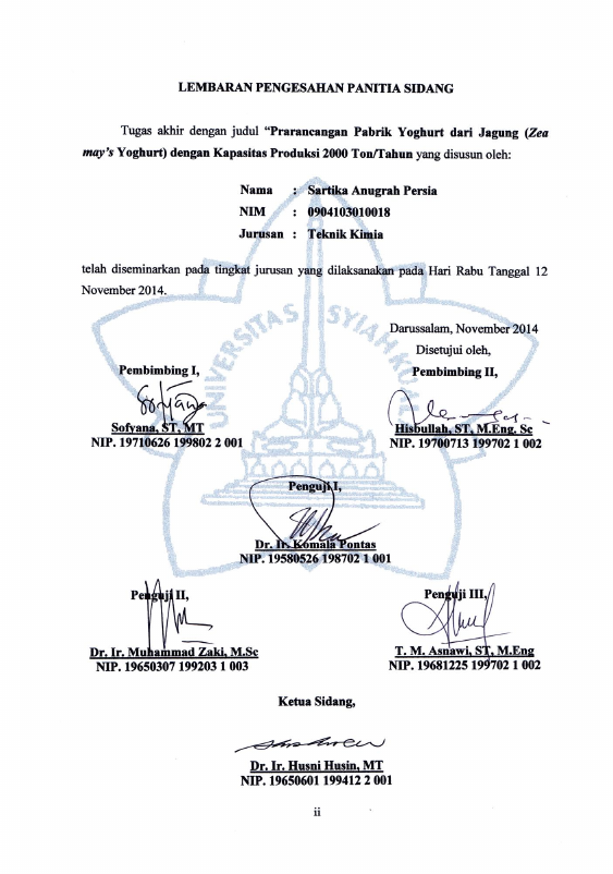 Sarah Nadia, PRARANCANGAN PABRIK YOGHURT DARI JAGUNG (ZEA MAY’S YOGHURT) DENGAN KAPASITAS PRODUKSI 2.000 TON/TAHUN. Banda Aceh Fakultas Teknik Kimia,2014
