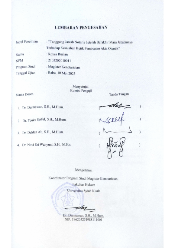 Baca Juga : TANGGUNG JAWAB PERDATA NOTARIS TERHADAP AKTA OTENTIK YANG MENYEBABKAN SENGKETA TANAH (SUATU PENELITIAN DI KOTA BANDA ACEH) (ASSHIFA UMMAMI K, 2019)