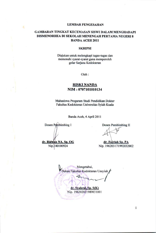 Baca Juga : HUBUNGAN SINDROMA PREMENSTRUASI TERHADAP KECEMASAN PADA SISWI SMP NEGERI 10 BANDA ACEH (fitri fatimah, 2015)