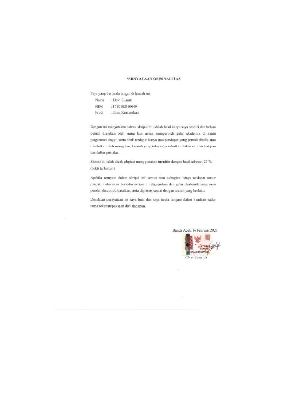 DEVI SUSANTI, ANALISIS RESEPSI KHALAYAK TERHADAP PESAN DAKWAH BERCADAR DALAM AKUN INSTAGRAM @NIQABSQUAD_OFFICIAL. Banda Aceh Fakultas Ilmu Sosial dan Ilmu Politik,2023
