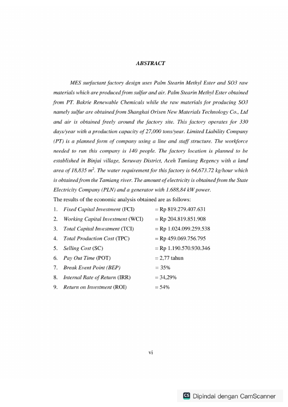 Irhamna, PRARANCANGAN PABRIK SURFAKTAN METIL ESTER SULFONAT DARI PALM STEARIN METHYL ESTER DENGAN KAPASITAS PRODUKSI 27.000 TON/TAHUN. Banda Aceh Fakultas Teknik,2023