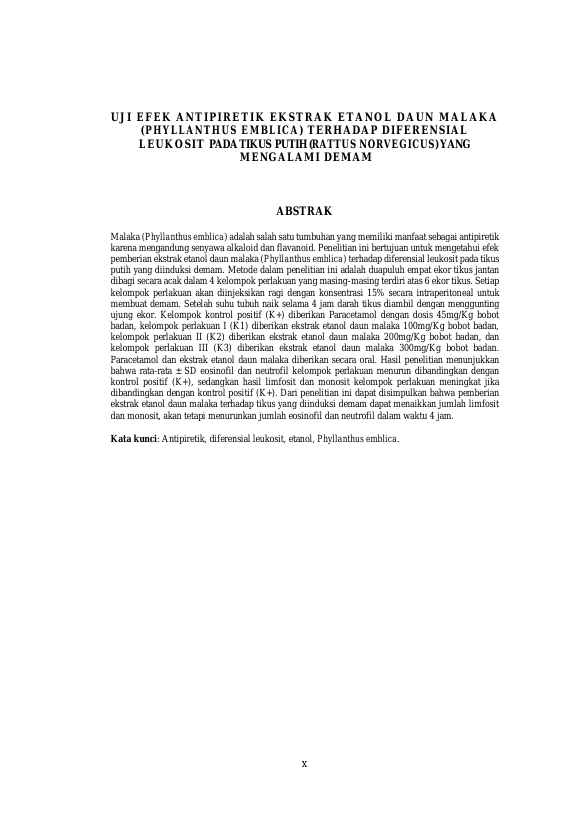 Annisa Dea, UJI EFEK ANTIPIRETIK EKSTRAK ETANOL DAUN MALAKA (PHYLLANTHUS EMBLICA) TERHADAP DIFERENSIAL LEUKOSIT PADA TIKUS PUTIH (RATTUS NORVEGICUS) YANG MENGALAMI DEMAM. Banda Aceh Fakultas Kedokteran Hewan,2023