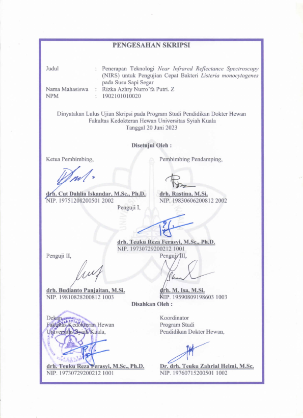 Baca Juga : EVALUASI TEKNOLOGI NEAR INFRARED REFLECTANCE SPECTROSCOPY (NIRS) DALAM PENGUJIAN CEPAT SUSU SAPI YANG TERKONTAMINASI BAKTERI ESCHERICHIA COLI DAN LISTERIA MONOCYTOGENES (Rizka Azhry Nurrofa Putri Z, 2024)