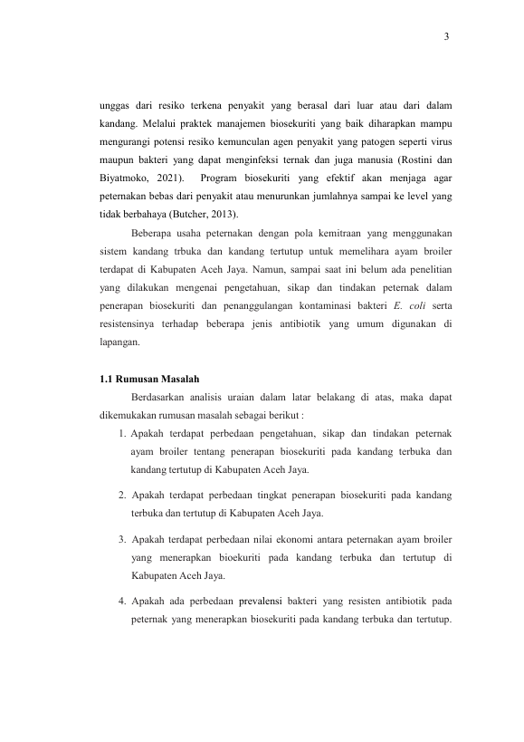 Baca Juga : PENGUKURAN PENERAPAN STANDAR BIOSEKURITI UNTUK MENCEGAH KONTAMINASI ESHERICHIA COLI PADA KANDANG AYAM TIPE KANDANG TERTUTUP DI TEUNOM ACEH JAYA (Hadika Adzikri Lubis, 2023)