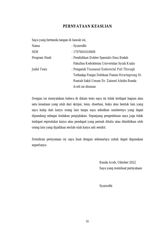 Baca Juga : OUTCOME PASIEN PENYAKIT HIRSCHSPRUNG PASCA OPERASI TRANSANAL ENDORECTAL PULL THROUGH (TEPT) DI RSUD DR. ZAINOEL ABIDIN BANDA ACEH (Hawanur Husna, 2016)