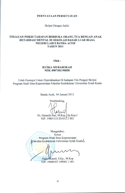 Ryzka Mubarokah, TINJAUAN PSIKIS TAHAPAN BERDUKA ORANG TUA DENGAN ANAK RETARDASI MENTAL DI SEKOLAH DASAR LUAR BIASA NEGERI LABUI BANDA ACEH TAHUN 2011. Banda Aceh Fakultas Kedokteran,2012